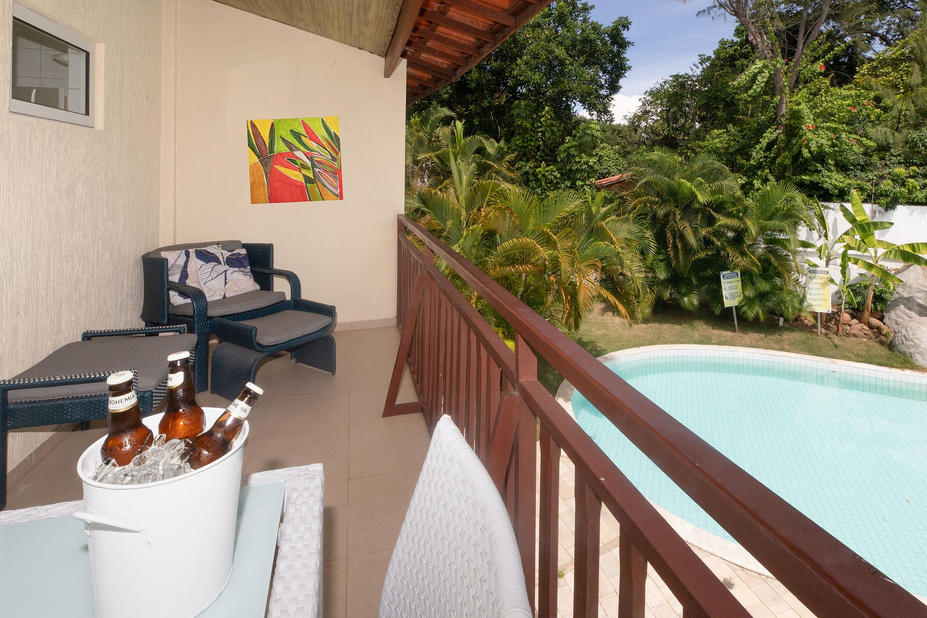 Zona de Piscina: Está estrictamente prohibido el uso de utensilios, vasos o botellas de vidrio en el área de la piscina. Sugerimos utilizar materiales plásticos o acrílicos para garantizar la seguridad de todos.